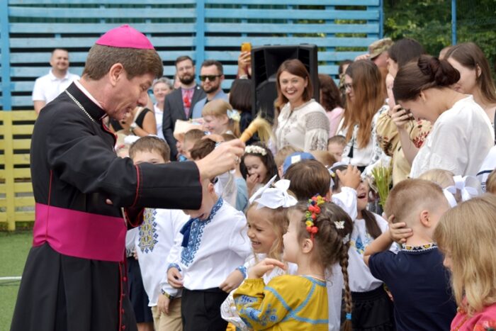 Традиційно святково, урочисто й по‑родинному розпочався новий навчальний 2025-2026 рік у католицькому навчальному закладі. Головна увага Першого вересня була приділена родинам першокласників: цьогоріч на запрошення директорки ліцею пані Марії Левченко батьки символічно вводили своїх маленьких школяриків і передавали їх під опіку перших учительок. Спільнота вчителів презентувала присутнім пантоміму «Чудо в Кані Галілейській», яка стала вступом до теми року — «Довіра. Зробіть усе те, що Він вам скаже!» (Йн2,5).