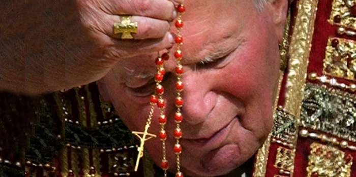 Боже у Пресвятій Трійці єдиний, дякуємо Тобі за те, що дав Церкві своїй папу святого Йоана Павла ІІ, в якому засяяла Твоя батьківська доброта, слава хреста Христового і краса Духа любові.