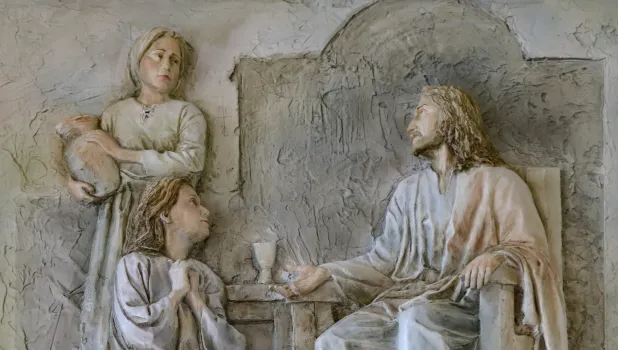 Марія сіла в ногах Ісуса та слухала Його слова, а Марта була повністю поглинута домашніми справами, щоб належно послужити. І врешті поскаржилася гостеві на сестру, просячи Христа сказати, щоб та допомогла. Господь же відповів: «Марто, ти клопочешся і побиваєшся про багато, але одного потрібно. Марія вибрала кращу частку, яку у неї не відберуть».