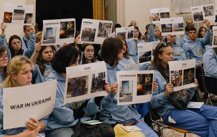 — Мене звати Яна. Я з Вінниці. Я приїхала з країни, де війна триває понад десять років. У 2014 році росія вторглася на нашу територію. Спочатку була анексія Криму, потім війна на Донбасі. Тоді багато людей у світі не вірили, що це справжня війна. У деяких країнах її називали «конфліктом» чи «кризою»; але для нас це завжди було вторгнення, смерть і страх, що увійшов у наші міста і життя.