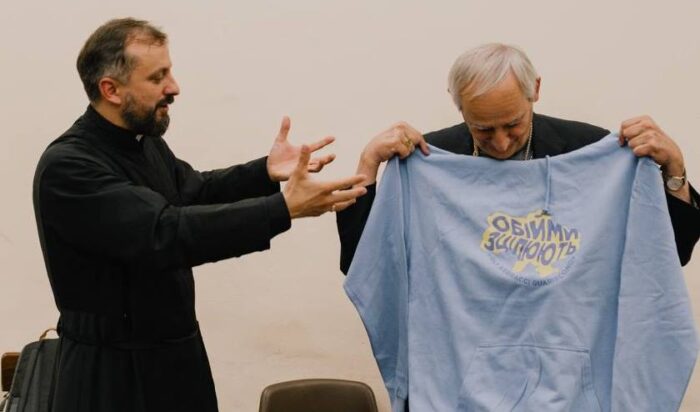 Після спільної молитви кардиналові Дзуппі подарували книгу історії УГКЦ. Символічний дар від о.Романа —хрест: знак страждання, але також знак надії та воскресіння. І знак близькості й вдячності за підтримку українського народу.