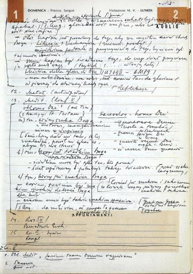 Сторінка з особистого щоденника св.Йоана Павла ІІ. Ілюстрація за виданням “Jestem bardzo w rękach Bożych”. Notatki osobiste 1962-2003, Wyd. Znak