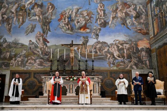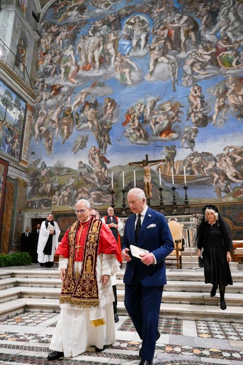 Фрески Мікеланджело, насичені кольори склепінь і картина створення, що зображує два пальці — Божий і людський, — які майже торкаються один одного. Цей образ добре відображає те, що відбувалося в Сикстинській каплиці між Католицькою Церквою та Церквою Англії. Дві реальності, представлені присутністю Папи Лева XIV і короля Чарльза ІІІ. Історичний момент для двох Церков: спільна молитва Папи і Короля відбулася вперше з часів Реформації, коли Церква Англії відступила від єдності з Церквою Риму.