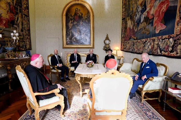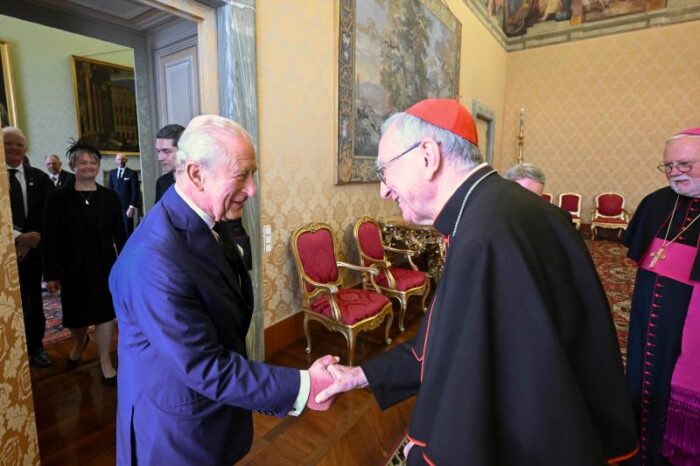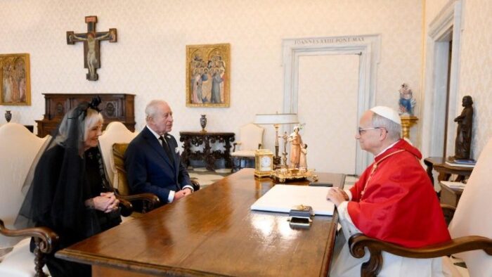Державний візит короля й королеви Сполученого Королівства Чарльза ІІІ та Каміли до Ватикану, що відбувся у четвер, 23 жовтня 2025 р., включав розмову з Папою Левом XIV та переговори в Державному секретаріаті з кардиналом Пʼєтро Пароліном, якого супроводжував архієпископ Пол Річард Ґаллагер, Секретар у справах стосунків з Державами і міжнародними організаціями.