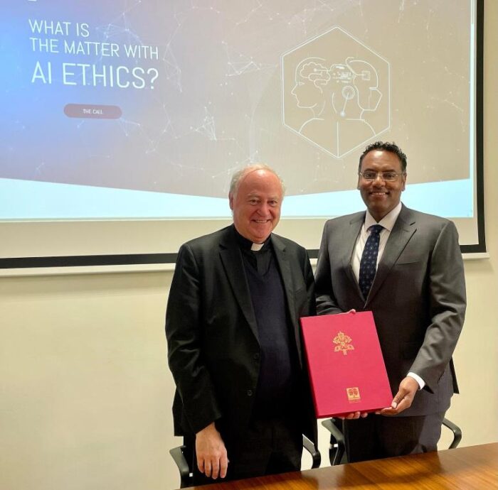 «Цей новий підпис має надзвичайну цінність, оскільки підкреслює нагальність алгоретики (…). Йдеться не лише про проголошення абстрактних етичних принципів, а про конкретне втілення етики в практиці розвитку штучного інтелекту». Такими словами монсеньйор Ренцо Пеґораро, новий голова Папської академії «За життя» та Фонду RenAIssance, привітав підписання «Римського заклику щодо етики ШІ» Себастіаном Найлсом — головою та головним юридичним директором «Salesforce». Ця компанія надає підприємствам послуги щодо налагодження стосунків із клієнтами, впроваджуючи штучний інтелект.