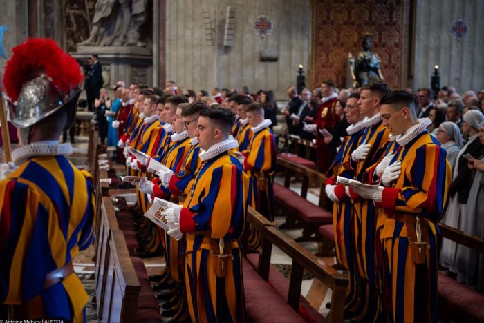 135 вояків — солдатів і офіцерів; жодних танків; характерна барвиста уніформа (яку помилково приписують авторству Мікеланджело). Папська швейцарська гвардія, заснована 1506 року, є найменшою і найстарішою безперервно існуючою армією в світі. Її члени охороняють Папу Римського та стоять на варті біля воріт Ватикану.