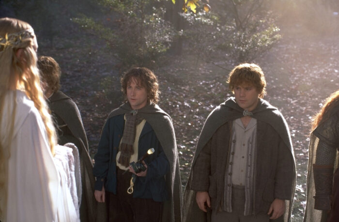 Однак найцікавіша різдвяна тема виникає у книжках трохи згодом, коли Братство прибуває у Лотлорієн і проводить час з Ґаладріель. Перед тим, як вони покидають її королівство, відбувається прощальний бенкет. На святі вручаються подарунки. Кожен член Братства отримує індивідуальний подарунок — ельфійські плащі та брошки, спеціальну мотузку для Сема, золотий пояс для Боромира, срібні пояси для Меррі й Піпіна, лук і стріли для Леґоласа, три пасма волосся Ґаладріель для Ґімлі, фіал Ґаладріель для Фродо тощо. Як і будь-який хороший різдвяний подарунок, кожен з них ретельно підбирається для одержувача.