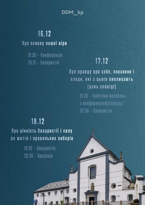 16-18 грудня 2025 року відбудуться вечірні реколекціїї для молоді у храмі св.Діви Марії Ангельської, м.Вінниця.