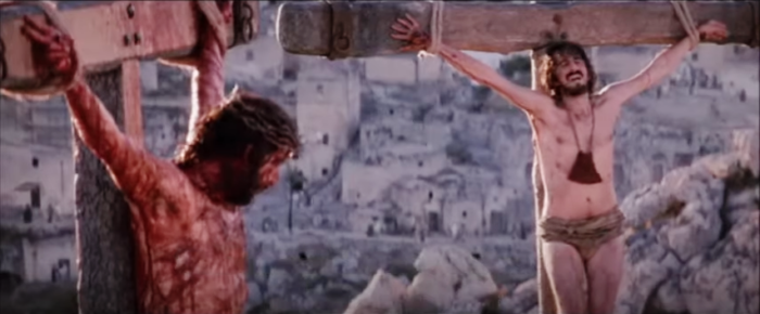 Зовсім інакше на це дивився другий розіп’ятий розбійник, який насміхався з Ісуса, глузливо вимагаючи врятувати себе та їх обох, якщо Він насправді Месія.